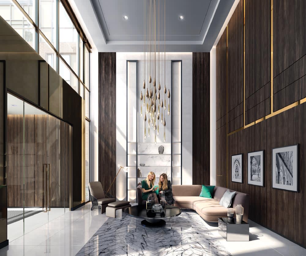 Offering an impressive focal point, the central lobby and concierge station designed by award-winning U31 creates a magnificent sense of arrival. The double-height, boutique hotel-inspired lobby sets an uplifting ambiance, filled by day with an abundance of natural light. Carefully selected details including sumptuously upholstered contemporary furniture and polished stone create a sophisticated urban tone.